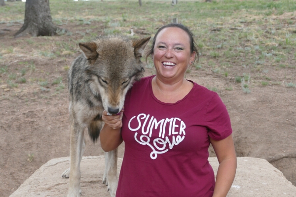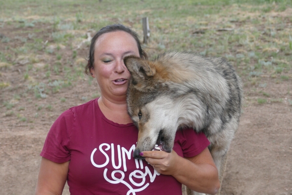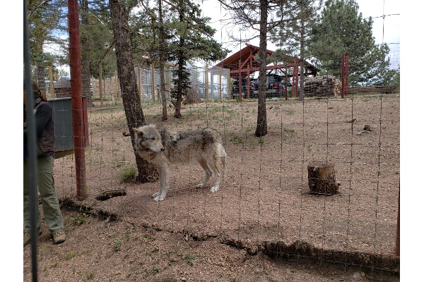 Our next stop was the highlight of the day. We drove a few minutes from the fossil bed park to the Colorado Wolf and Wildlife Center. We had a reservation for the noon tour. After checking in, we signed our lives away before taking a tour to meet the different wolves at the center. What a great experience! The wolves are beautiful creatures and truly given a bad rap through stories and Hollywood.
