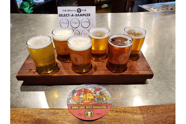 Our next stop was Bristol Brewing Company. It was located at an old elementary school converted into retail and restaurant space. What a neat concept, and apparently, very popular too. It was super busy. We scored two seats at the bar. I ordered a flight and we picked a few items off the menu to snack on.