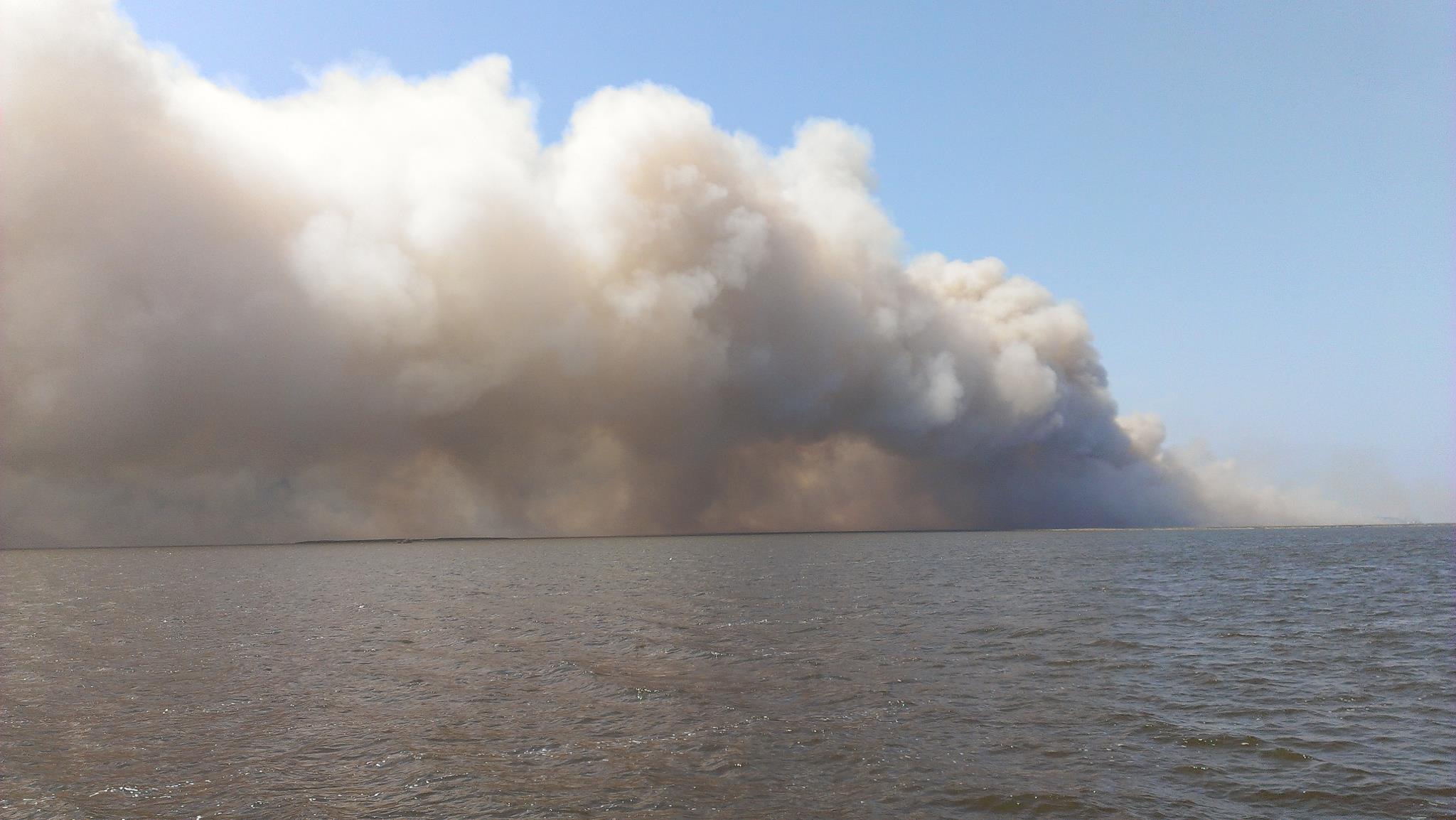 The family was getting ready to head to the pool for the day and while letting the dogs out around 10:30 am, I noticed large billows of smoke. At first, I thought it was a storm, but then it looked like a bomb had exploded in the air. The smoke was coming from the Sound so we hopped in the Jeep and headed to Bay Drive for further inspection.